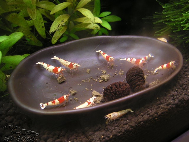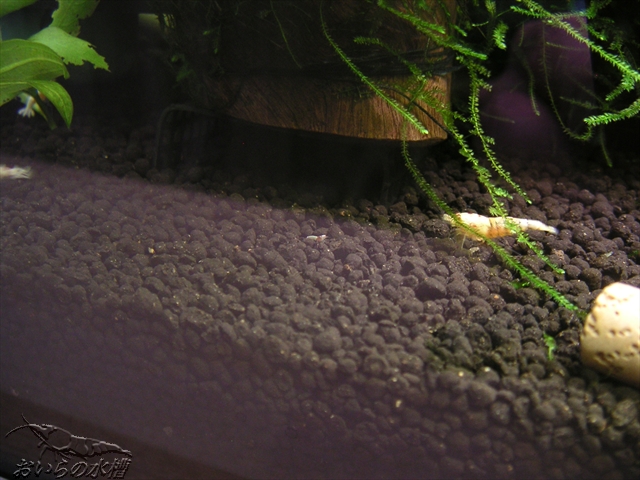 稚エビちゃん。いつも確認できる訳ではなく、よーく観察して数匹発見できる感じですので、皆無事に成長しているのか、見えない所でお☆様になっているのか判断できません(汗;