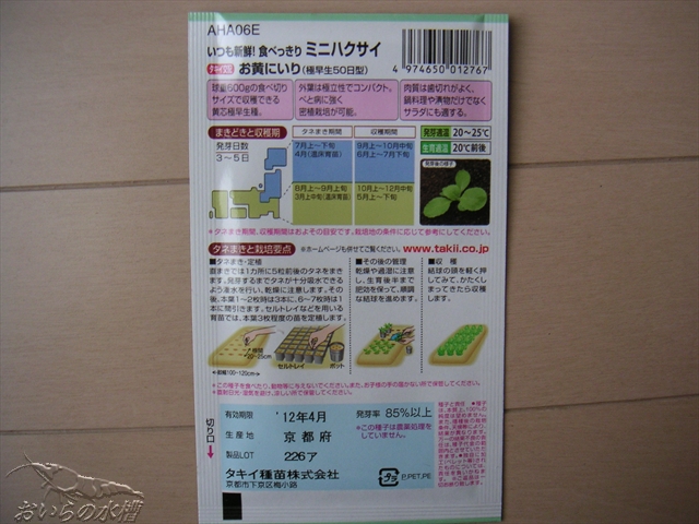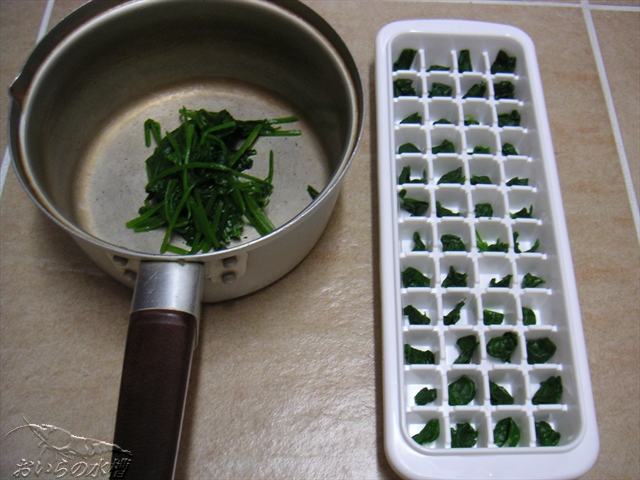 今日はついに、ほうれん草の収穫をいたしました。9/24に種を蒔いてから、いつ収穫しようか?あと一週間したらもう少し大きくなるかな?と悩んでいるうちにもう少しで2ヶ月になります。 収穫前の写真を ![]() このプランターではこのサイズが限界でしょう。 で、さっさと収穫いたしました^^ ネットを被せていた為、虫も付かず、結構綺麗だと思います♪ 早速、嫁に調理方法を教えてもらいながら茹でてエビさん用に準備しました! 写真左側の鍋は今夜のお味噌汁に入れて人間様が食す予定です^^ さてさて、空いたプランターどうしましょう・・・ 遊ばせておくのももったいないですし、まずはスコップで土地をほじほじ耕して水をかけて、次の野菜の種を蒔きましょう!蒔いた種はこれです^^ しかし、種まき時期を見てみると、8月~9月、今は丁度収穫の時期だそうですorz ま~温かいから蒔いちゃえ! 蒔いた後、こんな感じです^^ ![]() ここまで、エビさんネタが有りませんでしたので少々(汗; しばし前から水草を始めとする水槽改造計画を進めているのですが、一気に進めてしまうのはエビさんに負担と考え、1っ週間に1こずつ進めています。マツモ、アマフロと進め、今週は竹炭を入れてみました。吸着効果もさる事ながら、ミネラルも豊富との事(嬉 まずは鍋で10分煮沸消毒して、で、そのまま入れるのでは芸が有りませんので、ウィローモスを巻いてみました。トリミングのたびにペットボトルに入れて貯めてきたウィローモスさん、週2~3回は半分ほどの水替えをしていたのですが、結構痩せてしまいました><;これから元気になってね! 逆の角度からもう一枚 ![]() ではでは^^ノシ PR この記事にコメントする