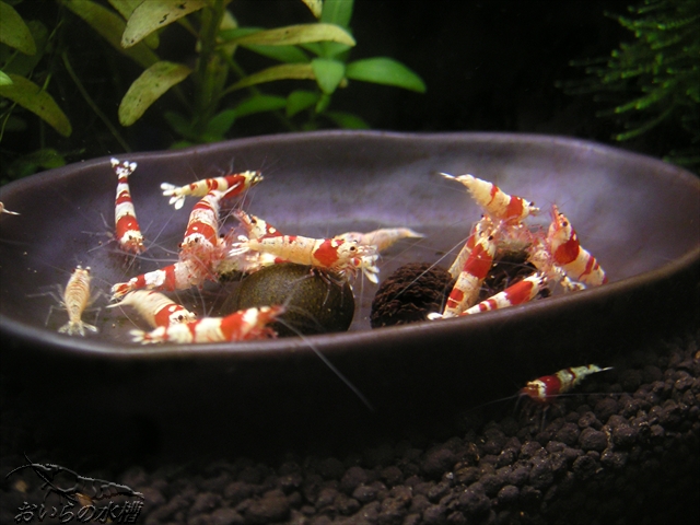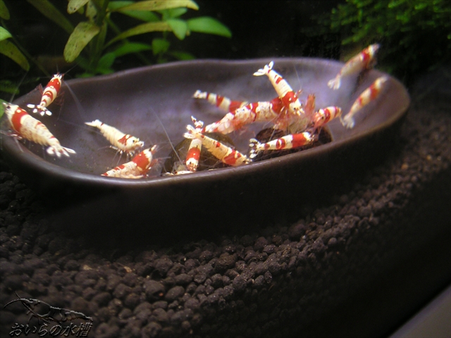 会員番号34番との事。エビ舞会の皆様、宜しくお願いします! さてさて、先日からレッドービーさんの餌について思案しているのですが、困っている事があります。 タブレット型の餌、そのまま一つ与えると多すぎるので、数個に砕いて与えるのですが、そうするとお持ち帰りするエビちゃんが居て、全員に行き渡りません><; まんべんなく与えようとすると量が多くなり水が汚れますし・・・ エビちゃん全員に行き渡るように、皆様はどのように工夫されていますか? たかた先生から頂いたスピナッチタブ(主原料:ほうれん草)、おいらの水槽では本物のほうれん草と同じ位にエビちゃん達に一番人気です^^ そんな風景を2枚ほど^^ その1 その2 ではでは^^ノシ PR この記事にコメントする
