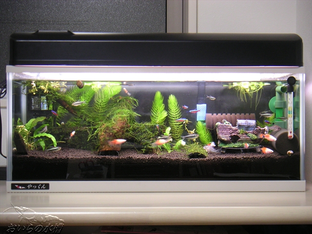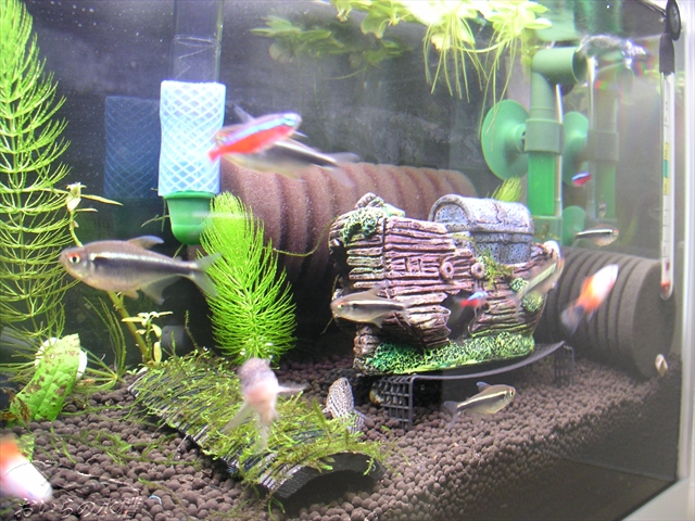 ・PHがアルカリ性に寄るため、エビさん水槽で増えた水草の退避場所にならない事。 ・お魚さんの元気が無い事。 ・ソイル水槽にしたかった事。 リセットしたのは11/25の夜中でした。 ソイルはプラチナソイルのノーマルとパウダーの2層。濾過は底面、外掛け+スポンジ、エアーリフトのスポンジの3本です。 元々、パイロットフィッシュとして購入したカージナルテトラさん、ブラックネオンさん、コリドラスさんですので今回も自分たち自身でパイロットになっていただきました^^; 昨日11/26時点での水槽データは