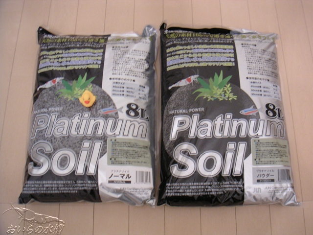惚れてしまった「プラチナソイル」です。ノーマル8㍑、パウダー8㍑。合計で3,260円