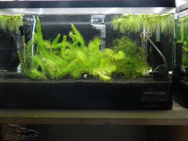 栄養系オンリーではありませんが、下から プラチナノーマル :3㍑ マスターソイルノーマル :3㍑ プラチナパウダー :3㍑ ブラックサンダーパウダー:3㍑ 1/4栄養系と、3/4吸着系です。 40日経過時点でまだアンモニアが検出されていましたが、50日経過時点で検査してみると、アンモニア、亜硝酸、良い感じに無くなっています。 硝酸塩が前回より若干薄くなったのは水替えに使う水(ポリタンクで1週間エアレーション)の中と、水槽の中に活性炭を放り込んでおいたからだと思います。 これを継続すれば、だんだん薄くなっていくのではないかと・・・ エビさんを入れてからもしばらくは水槽内に活性炭を放り込みますが、稚エビさんが生まれるようになると、活性炭と一緒に稚エビさんもポイしてしまう可能性があるので、水槽内に放り込むのは止めます。 我が家では元水である水道水に硝酸塩がたんまり含まれていますので、ポリタンク貯水の一週間で活性炭に吸い取ってもう作戦です。 活性炭をネットに入れてポリタンクに放り込むのですが、中でネットが膨らんでしまい取り出すときに一苦労です そこで、考えました リレーのバトンのような筒に穴を沢山開けて、その中にネットごと活性炭を入れれば、筒ごと出し入れできます。 と、言う事で早速ホームセンターに筒探し ポリタンクの口の径より若干細めのPF管?が1m、120円でコスト的にも良さそうでした。 これを活性炭を入れるネットと同じくらいの長さに切ります。 そして、ドリルで穴を開けて、カッターナイフで穴を広げて 作業していたのですが、途中で負傷><; 自分の手のひらにナイフが突き刺さり、作業は一時断念しました。 コツコツ作業して完成したらまた続きの写真アップします 最後にそろそろ1年を迎えようとしている吸着系(プラチナソイル)のみの水槽ですが、まだまだソイルの粒がしっかりしているので、グッピーとヤマト隊長と水草を入れて維持しています。 まだまだこれらの維持であれば大丈夫でしょうか? ではでは^^ノシ PR この記事にコメントする