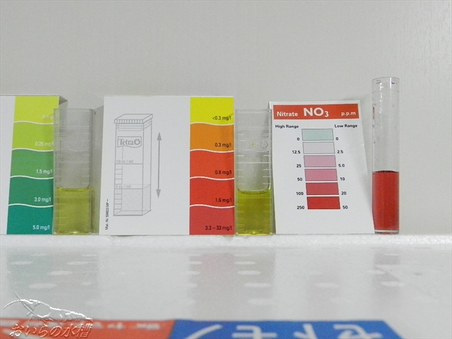 30日ほど経過時点でアンモニアが消えず、亜硝酸少々、硝酸塩MAXが続いており、こないだの週末に全水替をしました。 全水替から4日後の水質検査のご報告となります。 いきなり 水替えしたからなのか、アンモニア検出は低くなりました。 亜硝酸:若干高くなったかな 硝酸塩:相変わらずMAX うーん 硝酸塩とは長い付き合いになりそうです・・・ 今週末のエビさん購入は諦め、来週末辺りを検討していますが、まだ早いかな^^; 2週間後、再度水質検査してまた考えます。 いや~、色々考えるのって、やはり楽しいですね しかし、近所のホームセンターですが、最近急にエビさんを値上げしました。 こないだ見てきたら、だいたい一匹 松:3000円 竹:2000円 梅:800円 位でした。 半月ほど前までは1/2位だったのに・・・ ヤフオクとかで、探してみます。 PR この記事にコメントする