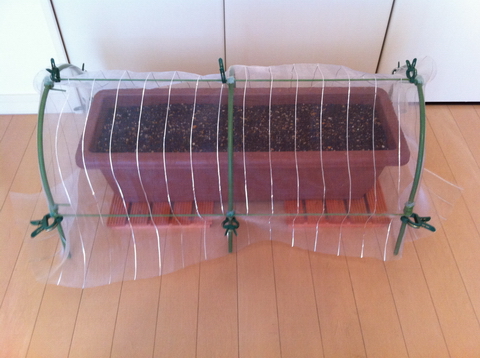 早速種撒きましたか~早っ! 虫除けのネットも早速作られていますが、これからの季節は虫も来ないのでは(爆) もしかすると虫除けの効果が確認できるのは来シーズンかも知れませんね^^;
