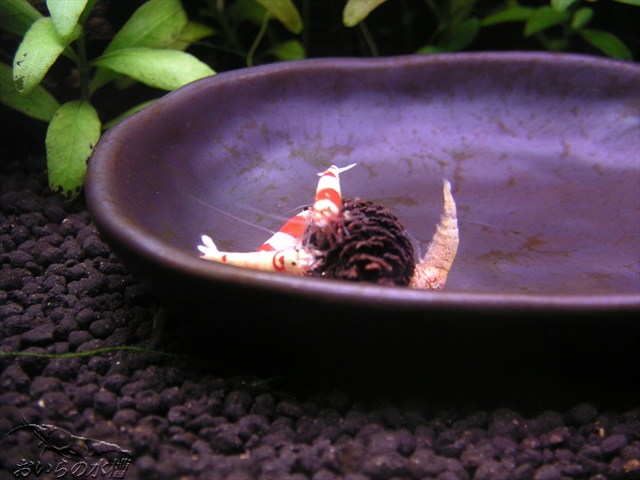 本日はebikuwaさんにお願いしていた実と葉が届きました! ありがとうございました~ ![]() 何かとあちらこちらで大人気のebikuwaさんの実と葉^^ 私も試してみたくならない訳がありません! そこで、恐る恐る打診させて頂いた所、ご快諾頂けました ![]() 写真が下手で申し訳ないのですが、ジップロックで小分けにして頂き、本日到着です。 しかも丁寧なお手紙付きです ![]() まずは何をどうしたら良いのか分からず、とりあえず先日入手しておいた乾燥剤を入れましたw ではでは中身を ![]() お手紙を読んでみると、ふむふむ。 え~@@ 何でも熊と格闘しながら奪い取ったとのこと! (作りました^^;) えっと、真面目に。 熱湯消毒してありますが、念の為投入前に再度、熱湯消毒をしたほうが良いとの事。 エビさん用の湯沸し器具を持っていなかったので、湯沸かしポットのお湯をエビさん飼育専用の計量カップに入れて熱湯消毒。これで良かったかしら・・・^^; まずは実。これはヤシャブシとは異なる種類とのことですが、同じような殺菌効果があるのでは?と勝手に想像し投入しました。エビさん、寄って来ましたよ~♪ 続いて葉。こちらはハサミでチョキチョキして、葉脈の辺りを水草の要領でソイルに埋めて見ました ![]() こちらも大盛況です^^ 実と葉、これはエビさんの餌になっているのでしょうか^^ あともう一つ、今日は嫁の友だちの旦那の友達関係のボスからお電話がありました^^ 以前レッドビーさんを楽しんでいたらしく、現在は水草水槽にハマっています。 今度、水草水槽のコンテストに参加しようかな~と、抱負を語って頂きました! 山梨のボス、読んでいたらコメントよろしくです^^ 最後に稚エビちゃんを2枚ほど ![]() ではでは^^ノシ PR この記事にコメントする