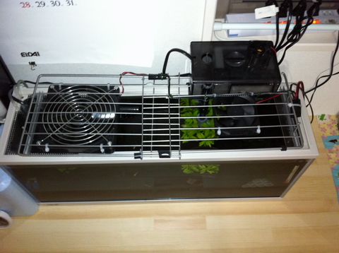 さて事前に兄にPC用の12V FANがあったら頂戴と言っていたのですが、 当日2つ持ってきてくれました(ありがと~ )^^帰宅後早速取り付けました。既存のFANと合わせて大磯水槽、ソイル水槽共に2個づつの配置となりました。 まずは大磯水槽 そして、ソイル水槽 水槽ライトのリフトアップ用に使用している台は100円均一で買ってきた台所用品です^^ しかし、来年の夏は水槽用クーラーが必要かなと感じているのですが、既に使用されている諸先輩方、 水槽用クーラってやはり音大きいのでしょうか?@@ 水槽が居間にある為、大きい音はNGなのです(汗; 最後に、レッドビーシュリンプさんの生存率報告です。 7匹、全員生きてま~す ![]() 日本ブログ村ランキングに参加しています。 応援ポチっとお願いします^^ ![]() PR この記事にコメントする